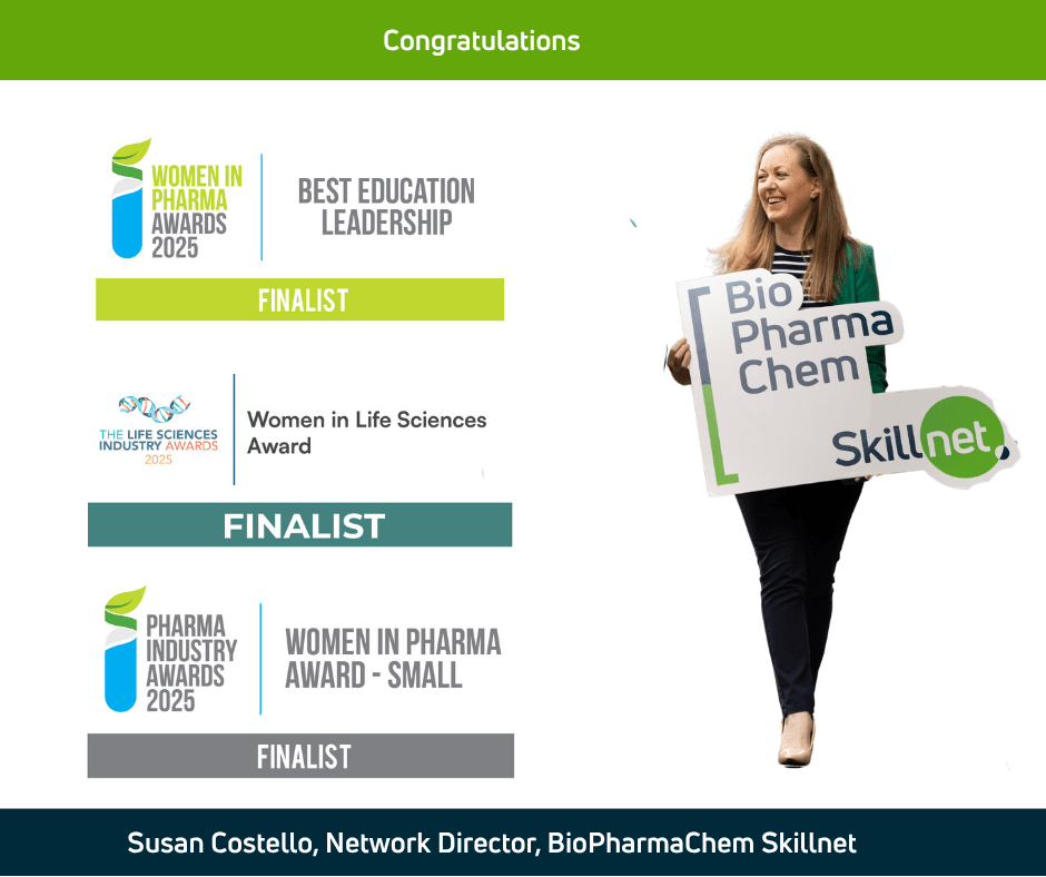 To learn more about Susan’s work and BioPharmaChem Skillnet’s upcoming initiatives, get in touch at or explore our training programmes at bpcskillnet.ie